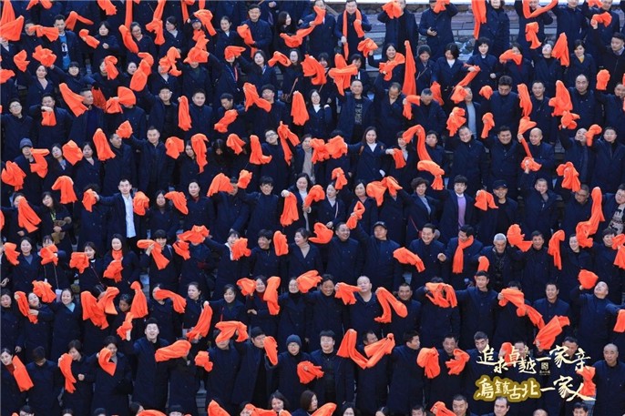 身著統一的服裝,帶著橙紅圍巾的1500名烏旅員工整齊劃一地排列在長城劇場上,此時此刻,每一位烏旅伙伴的心中都洋溢著愉悅的心情。