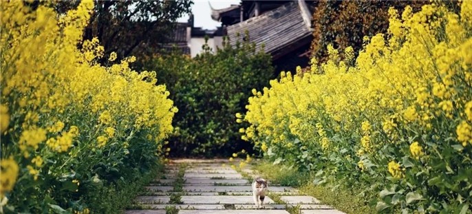 河岸的楊柳,靈水居的垂絲海棠,散落在各角落潔白的玉蘭花,烏村迎春綻放的粉桃,還有龍形田大片大片的油菜花,金黃金黃,爛漫開放……帶著春的氣息,生機勃勃。