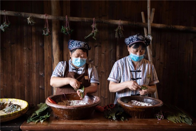 端午,吃粽正當時。烏鎮景區不僅推出了粽子禮盒,更是在現場準備了粽葉、糯米等材料,游客們可以盡情發揮想象力進行“花式包粽”。