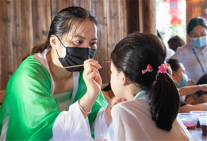 端午小長假期間,身著古風的小姐姐在景區免費為孩童們畫“王”,小朋友們不要錯過哈。