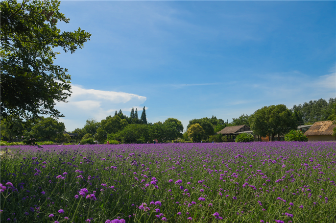 今夏來到這里會看到一大片紫色的馬鞭草,與藍天白云相映成趣。