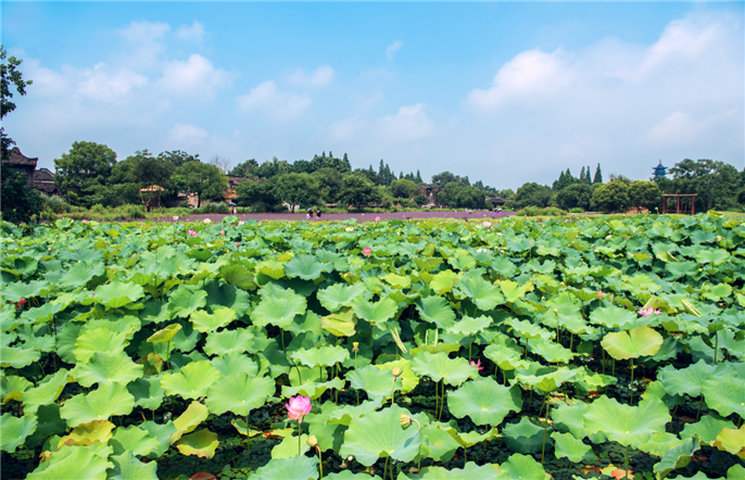 與之相望的是夏日荷花,同樣景色宜人。