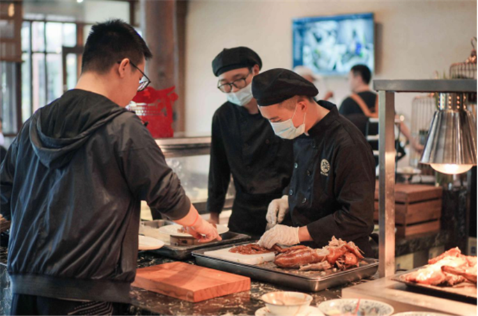 自助餐一直是烏村餐飲的重頭部分,除了保證美味衛(wèi)生外,每周都會(huì)創(chuàng)新形式舉辦各種主題的自助餐:米倉(cāng)燒烤、泳池派對(duì)、酒巷烤魚等等,能夠讓客人樂在其中,是烏村餐飲部每位員工的使命。