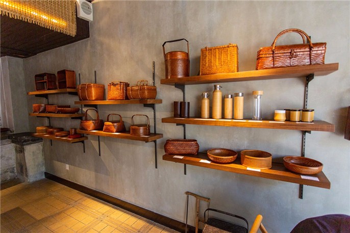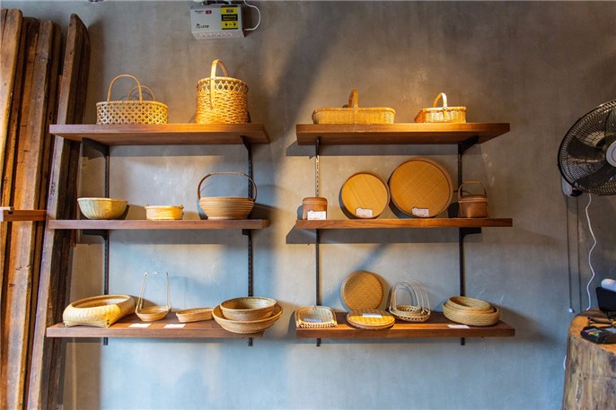 升級過后的烏鎮竹編店鋪,增加了更多竹器作品,仍舊是熟悉的傳統手作感,但在氛圍觀感上卻顯得舒適許多。江南人家曾經多次使用的各類竹器用品,即是售賣的物件,也是一個“竹器博物館”。