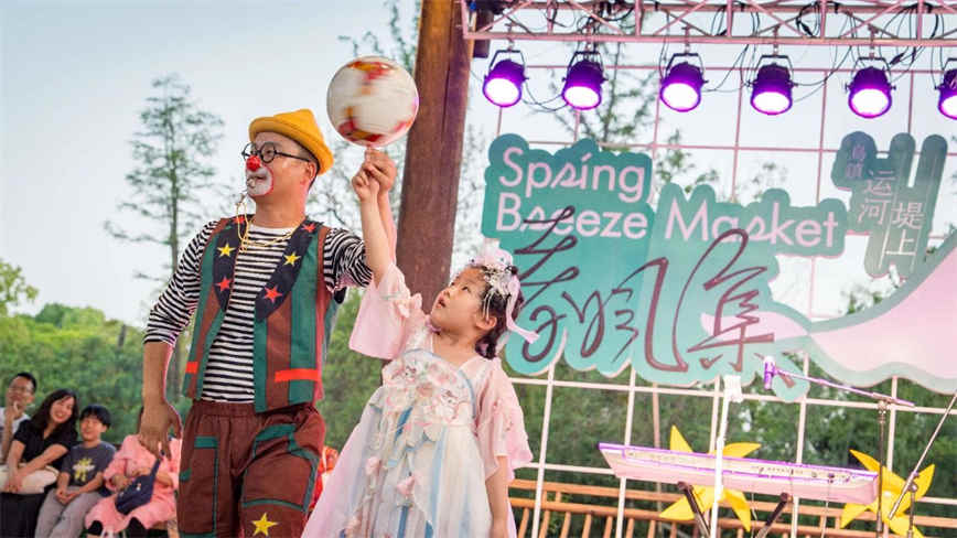端午期間恰逢六一兒童節(jié),堤上童玩節(jié)為孩子們打造了歡樂(lè)的天地:碼頭有戲空間播放著兒童主題歌單;小丑互動(dòng)演藝帶來(lái)精彩的魔術(shù)與滑稽表演;微醺埠舞臺(tái)區(qū)域的兒童KTV 挑戰(zhàn)賽,讓孩子們一展歌喉,盡情釋放活力。