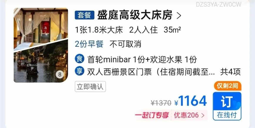 鏈接內還有一款連住2晚的套餐,券前價¥2399起,把原先的酒水小食升級成了堤上中餐廳100元餐飲代金券,還新增了線上行程顧問服務,更劃算了!
