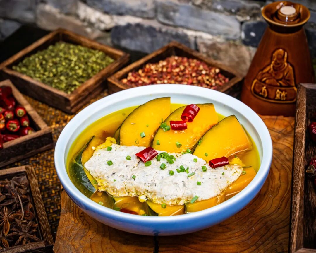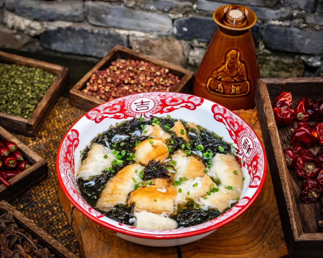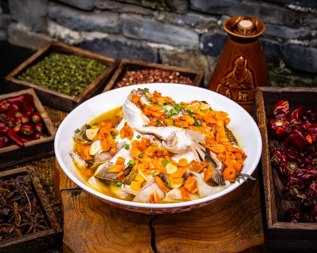 烏鎮本地菜籽油與醬油勾勒出金黃色澤,芋艿如凝脂般綿密,白水魚細嫩如絲,貢椒的辛香悄然滲透其中。一勺魚湯拌飯,鮮、嫩、辣、香在口中層層綻放。