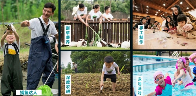 可以體驗鋤地種菜、蔬果采摘、捕魚、動物喂養,還有稻田里的戶外游泳派對晚餐