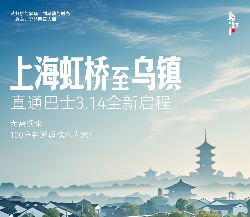 好消息!本周五(3月14日)起,烏鎮將正式開通一條全新的定制客運班線——上海虹橋客運西站(虹橋長途西站)至烏鎮西柵景區!