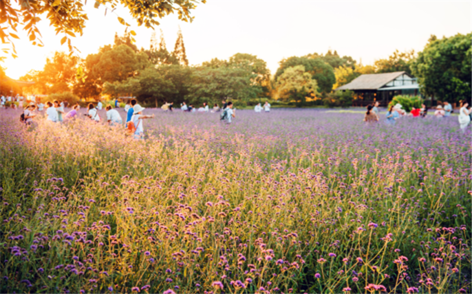 紫色的馬鞭草在西柵景區(qū)龍形田里開得正旺,游人徜徉在這片紫色的花海里,賞花拍照,流連忘返。