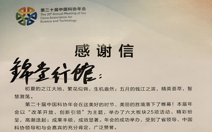 近日,烏鎮景區行館收到一封來自第二十屆中國科協年會組委會的感謝信,感謝其用優質服務對此屆中國科協年會的大力支持和鼎力相助。
