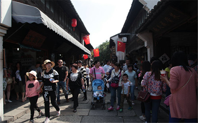 十月一日,祖國華誕,普天同慶,烏鎮(zhèn)景區(qū)處處蕩漾著節(jié)日的喜悅,飄舞的國旗、簇擁的鮮花和五彩的燈飾,將烏鎮(zhèn)景區(qū)裝扮地格外喜慶。