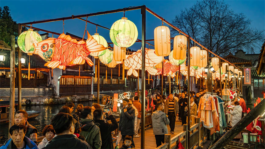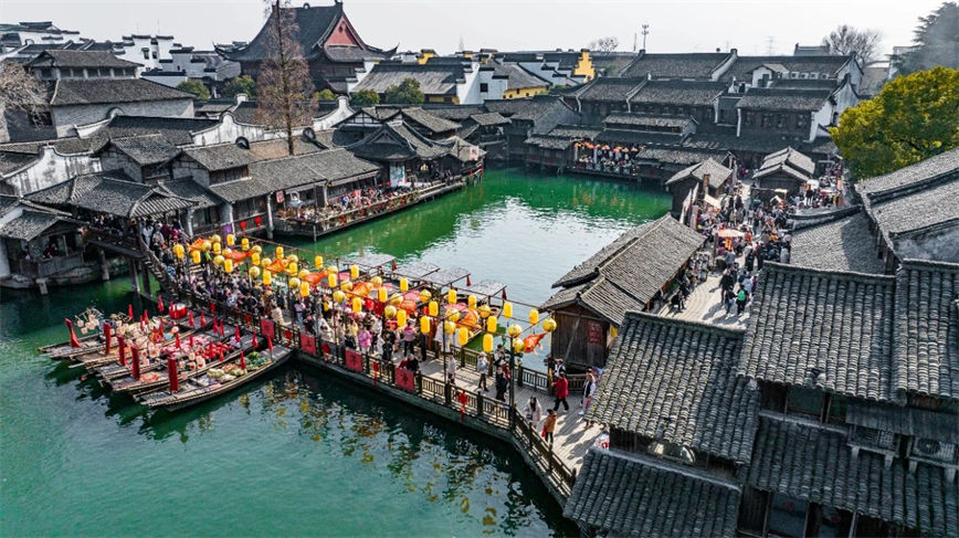 卯兔追冬去,辰龍報春來,正是萬家燈火團圓時,烏鎮景區“龍”光煥發,熱度爆棚。盛大的“龍行烏鎮水上年”系列活動正在進行,吸引四面八方的游客來此歡度春節,一睹枕水人家的水上年味,景區內到處人流涌動,洋溢著龍年新春歡樂氛圍。