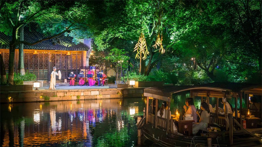江南夏夜,靜謐的私家園林藏起白日的喧擾,戲腔樂聲悠然響起。常言道:“園林是可以看的昆曲,昆曲是可以聽的園林。”水袖翩然六百年,船行舟楫、氤氳水汽的江南,孕育出昆曲的水墨唱腔。