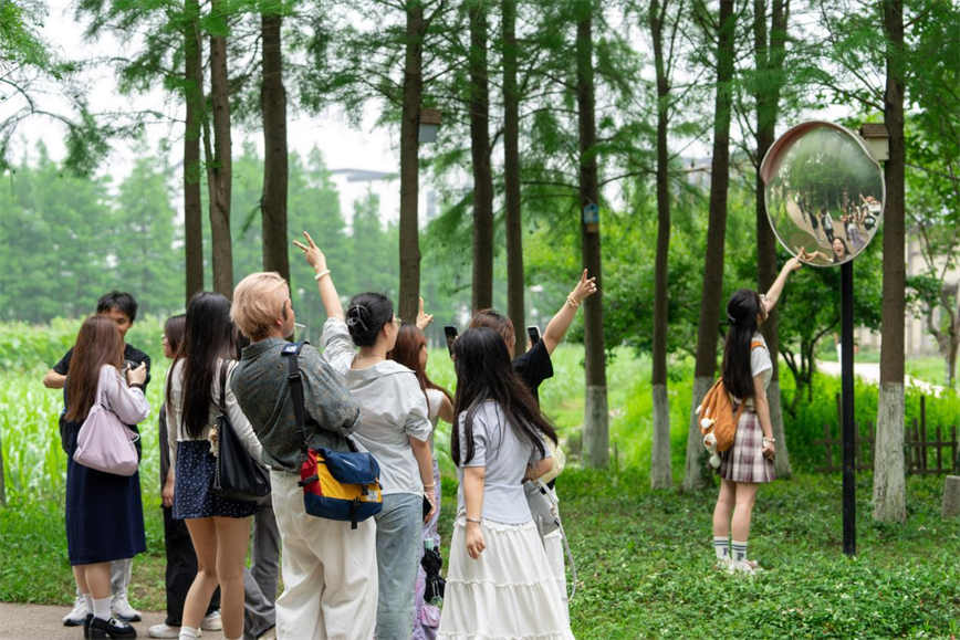6月12日,由嘉興市新聞傳媒中心主辦的“江南四季·村游嘉興”大學生記者團采風活動走進烏鎮烏村。來自嘉興大學、嘉興職業技術學院的16名大學生記者先后到魚塘、桃林、射箭場、知青咖啡吧、磨坊、稻舍鄉村酒店等游覽點,深入了解烏村的農耕文化,并拍攝創意視頻。