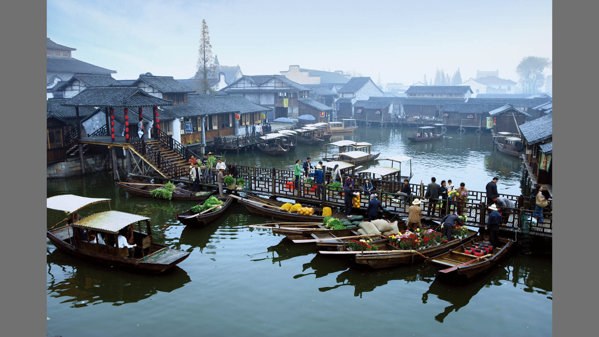 水上集市 以前烏鎮居民搖船趕早市集中買賣的場所。現仍不定期有集市,棧橋邊有大片錦鯉觀賞區。