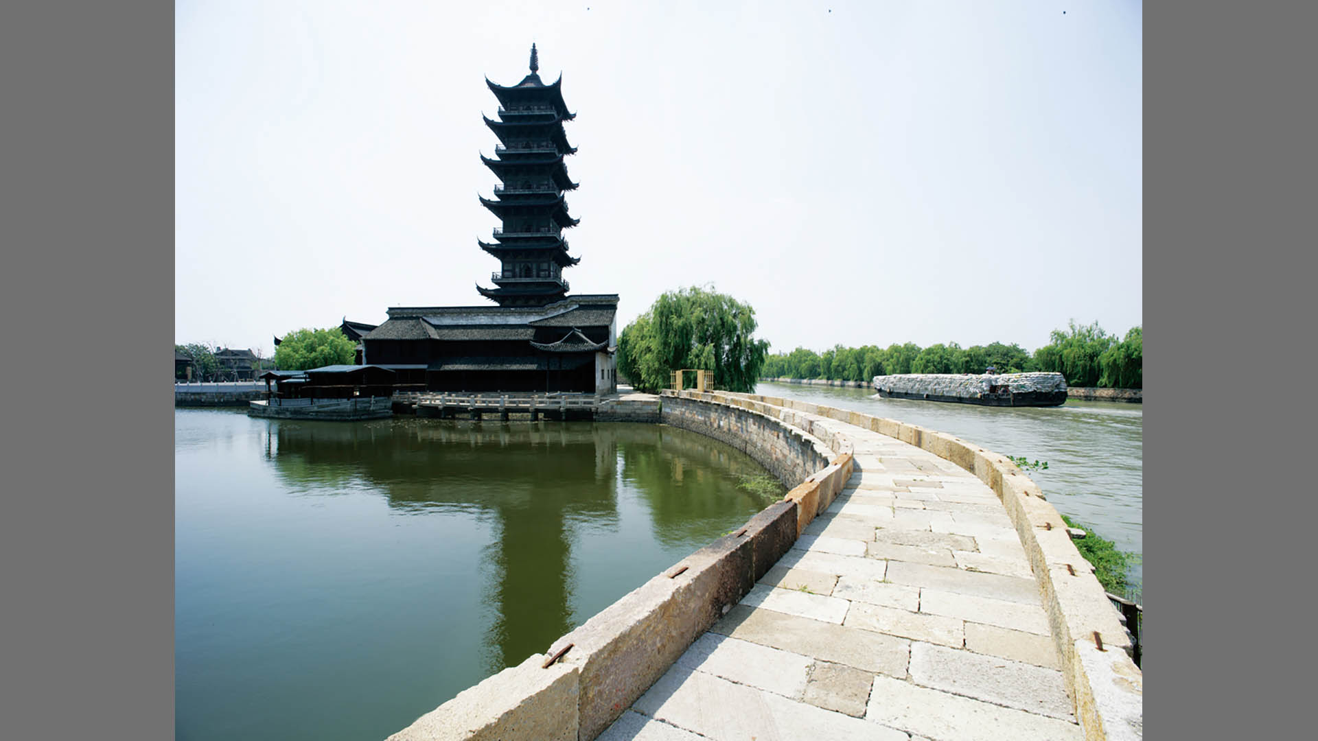 白蓮塔 烏鎮最高的古建筑,矗立在古運河畔,塔下有寺,香火旺盛。