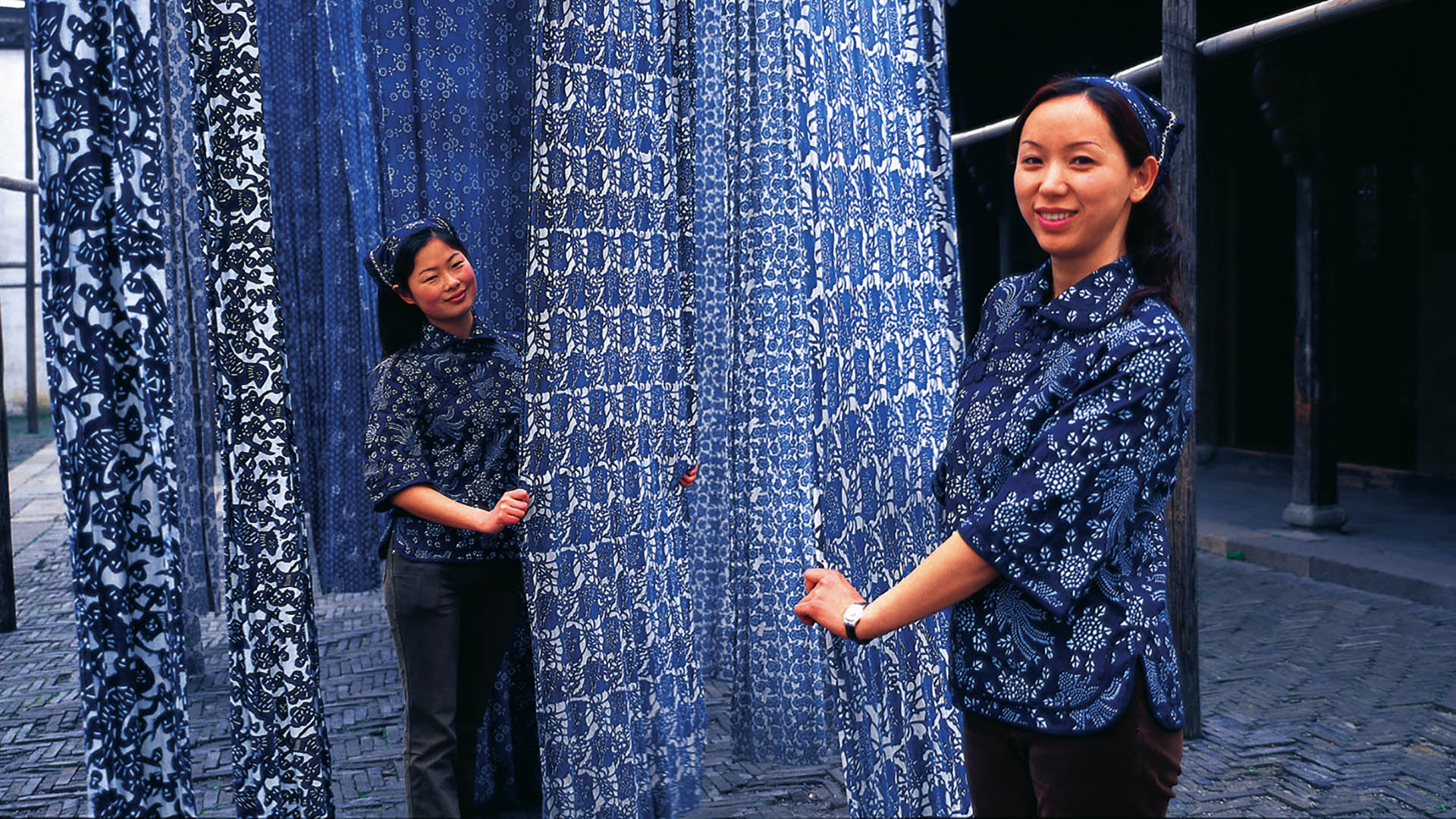 宏源泰染坊 前店后坊布局,前廳是商鋪,出售藍印花布制成品;后廳是作坊,包括展廳、上漿烤花間、染布房和曬場。