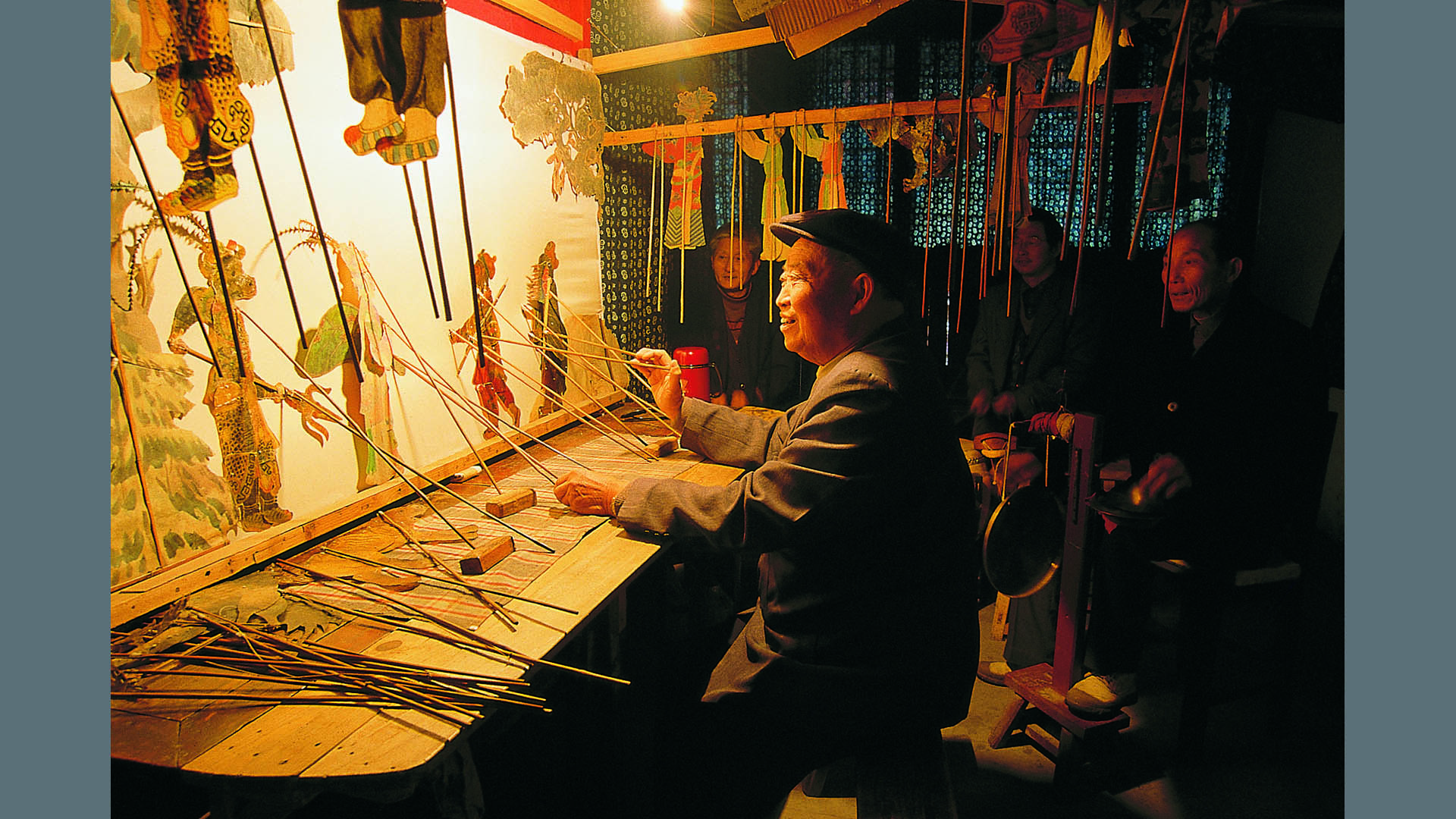 皮影戲 烏鎮地方戲曲之一,以在燈光照射下用獸皮刻制的人物隔亮布影演而得名。