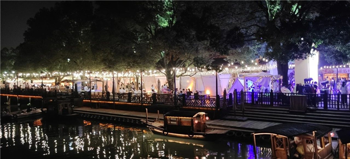 夜晚除了享受西柵璀璨的夜景,趁著夏日的余韻,再去打卡一波烏鎮如意橋夜市。坐落在烏鎮西柵茶藝街外場的如意橋夜市,美食小吃、潮玩演繹、互動體驗……應有盡有。
