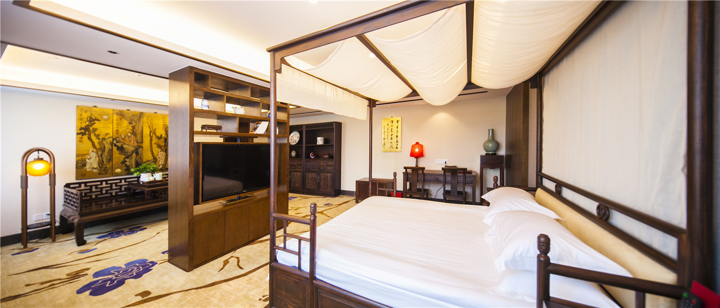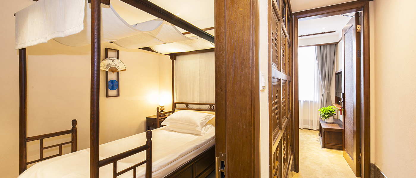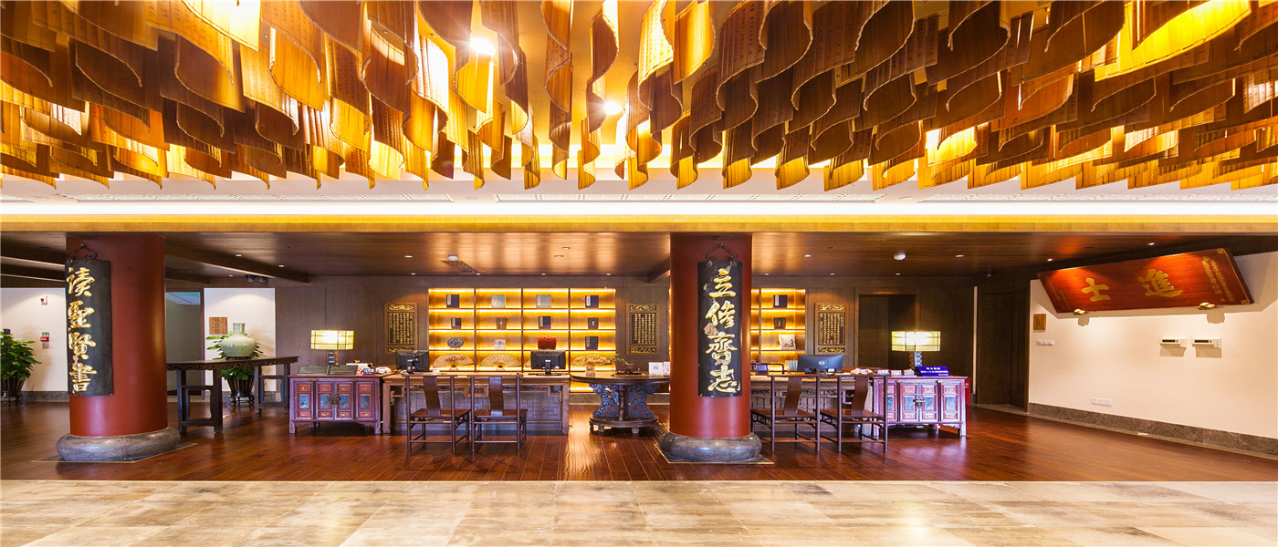 酒店裝修風格取材于烏鎮昭明書院古跡,融入江南古鎮文脈,打造文化休閑、書式生活空間。書舍廳堂彌漫古色古香的書卷氣息。