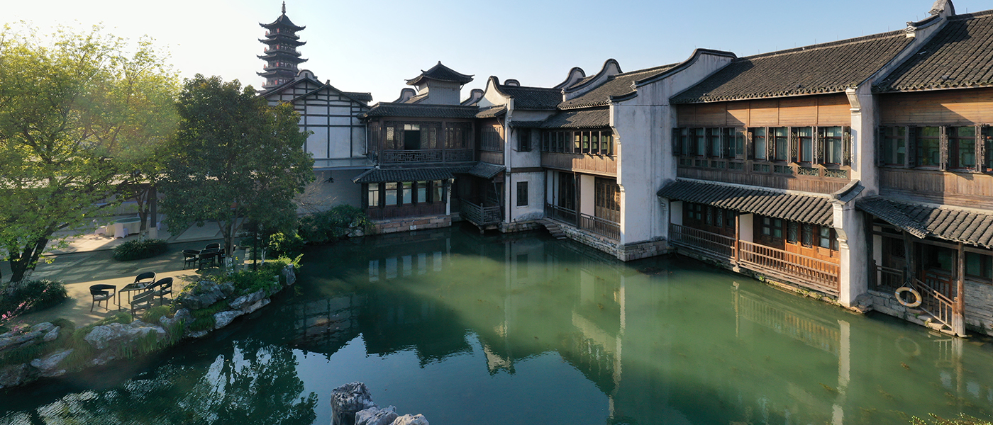望津里精品酒店坐落在西柵著名的白蓮塔之下,橋里橋之北側,緊依京杭大運河,南自杭州天目之源途徑湖州而來,北接江蘇之流,蜿蜒北上至京城,重修于明正德十年的通濟橋有聯證:通霅門開數萬家西環浙水,題橋人至三千里北望燕京。